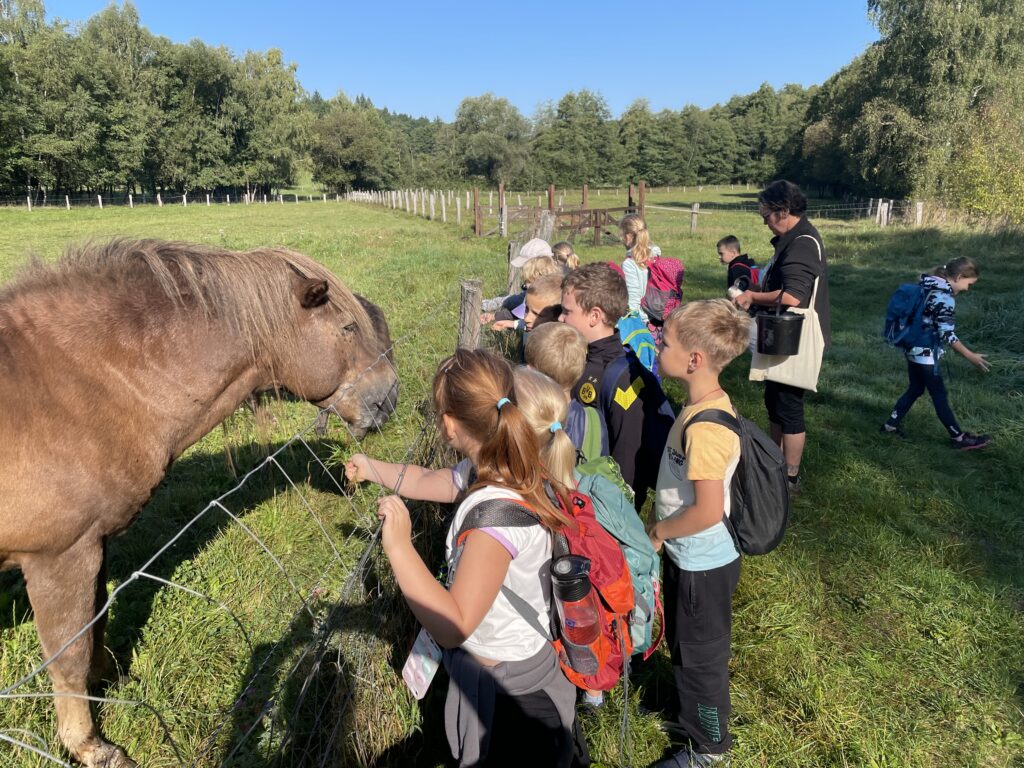 V rámci environmentální výchovy jsme s 2.třídou absolvovali program v Sedmihorkách „ Za zvířátky do ohrádky“.