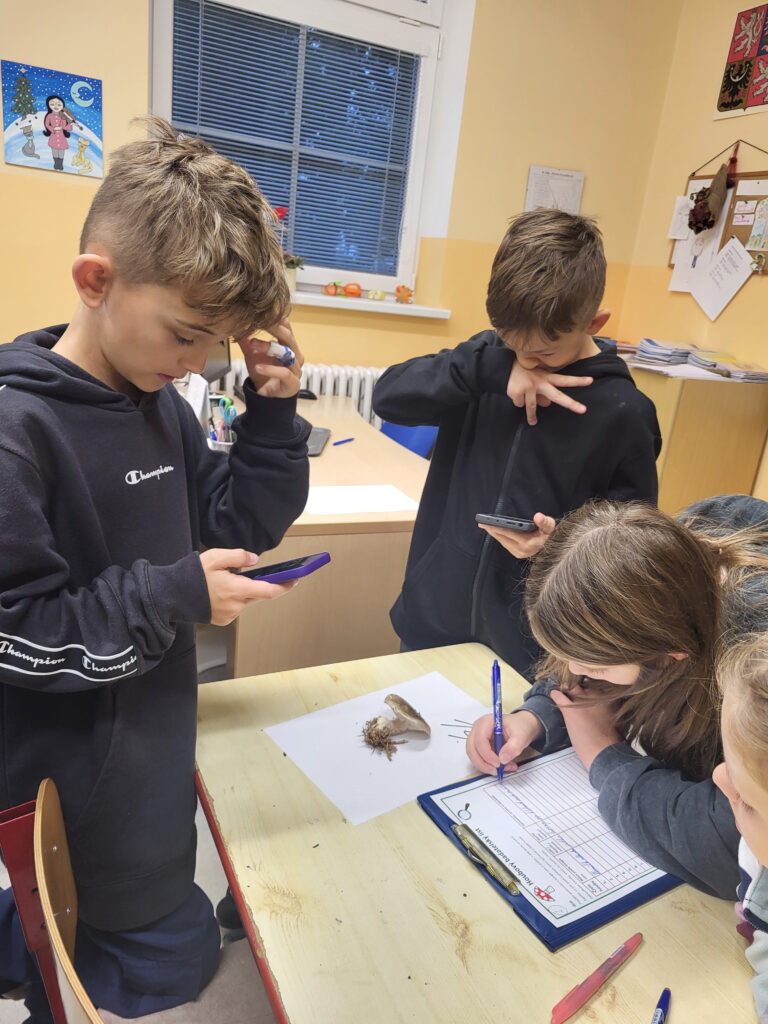 Žáci 4. ročníku si v hodině přírodovědy vyzkoušeli, jak propojit moderní technologie s badatelskou výukou. Přímo ve třídě pozorovali různé druhy hub – zkoumali jejich tvary, barvy a vůni, zapisovali poznatky do badatelského listu a pomocí aplikace Google Lens určovali jejich druh.