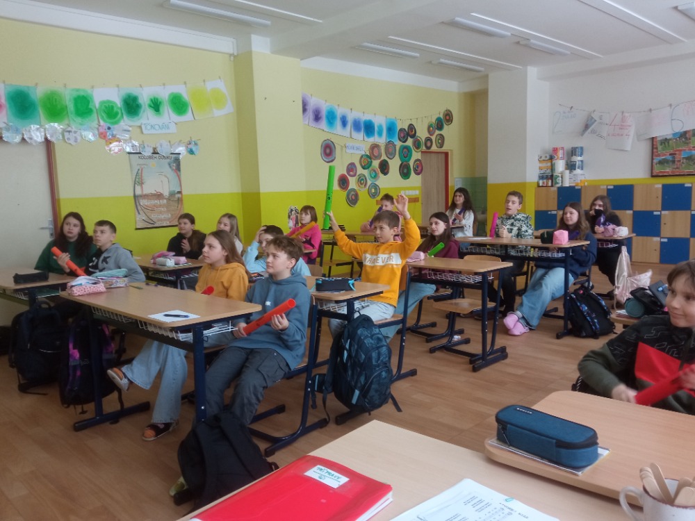 Když paní učitelky pořídily do naší školy ke konci roku 2025 nové netradiční hudební nástroje zvané Boomwhacker, ani možná netušily, jakou vlnu radosti tím všem dětem udělaly. Tento týden jsem s dětmi napříč všemi ročníky zkusila hrát na tyto barevné plastové „trubky“ a mohu potvrdit, že investice do těchto nevšedních hudebních nástrojů byla dobrou volbou, děti jsou nadšené a mají zase trochu více zpestřenou výuku v hudební výuce. Naše škola je tak obohacena již o další netradiční nástroj hned po bubnech z kartonu, zvaných „Kachony“, na které hrajeme již od jara minulého roku, v počtu 30 ti kusů. I ty jsou velmi oblíbené ve všech ročnících.