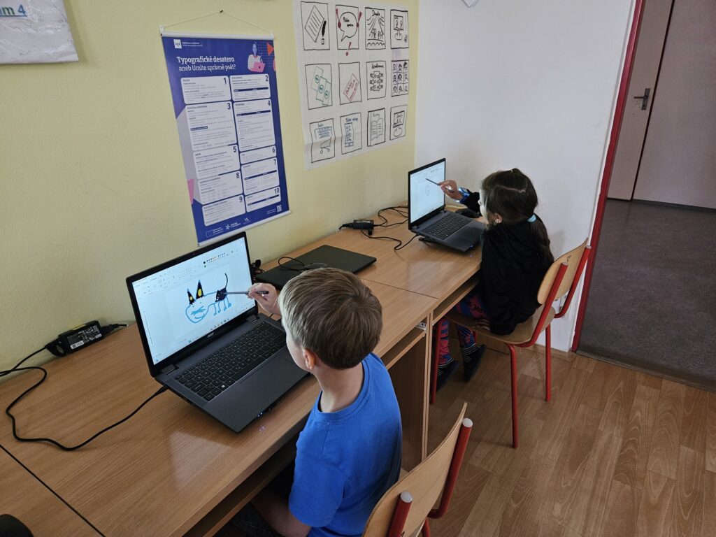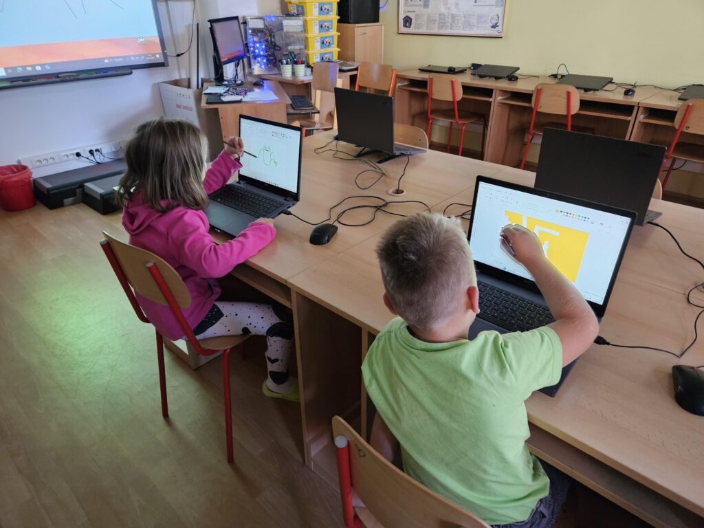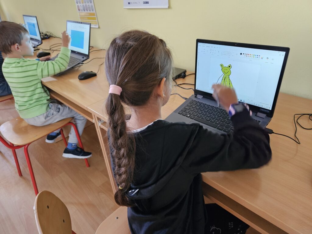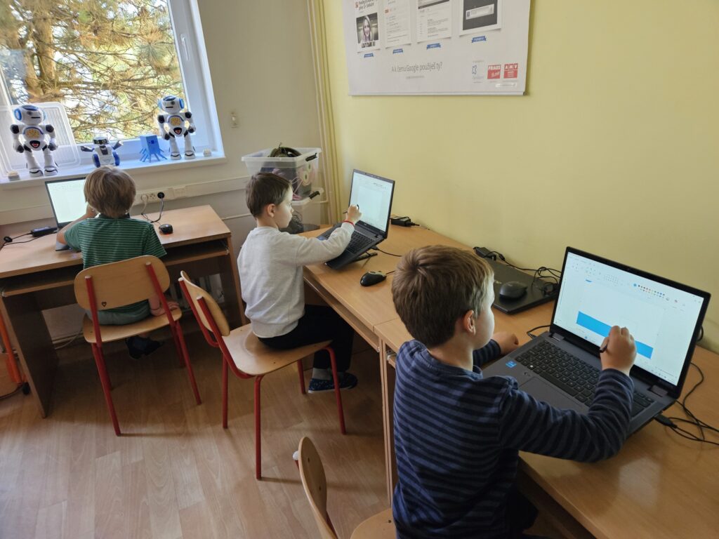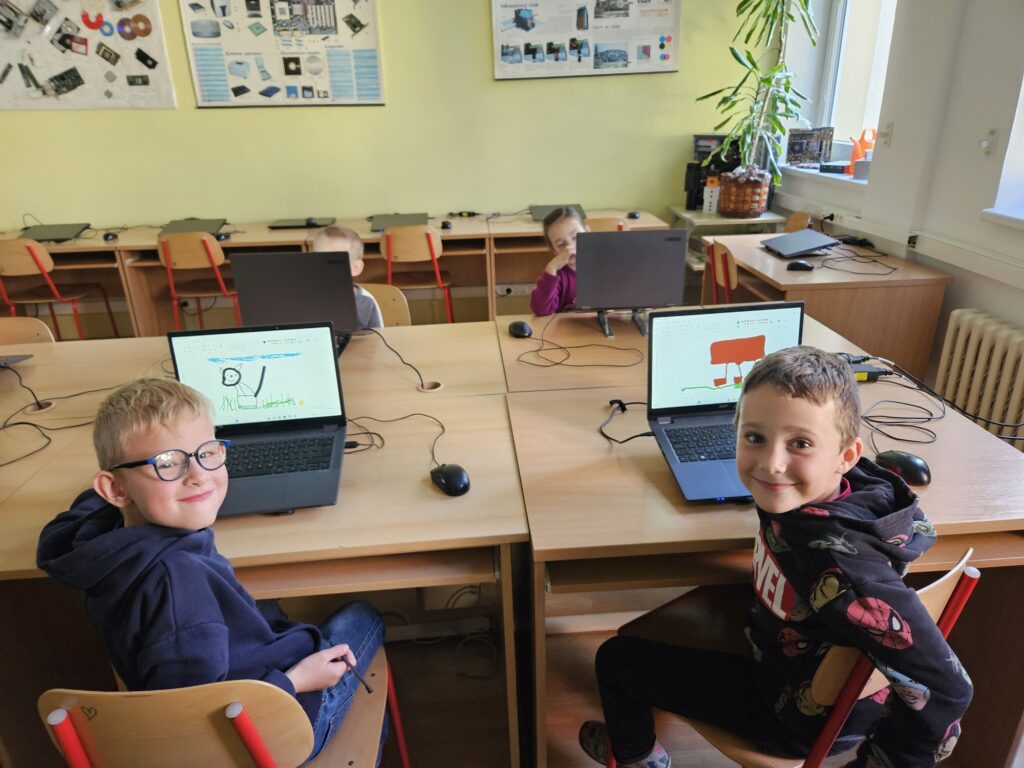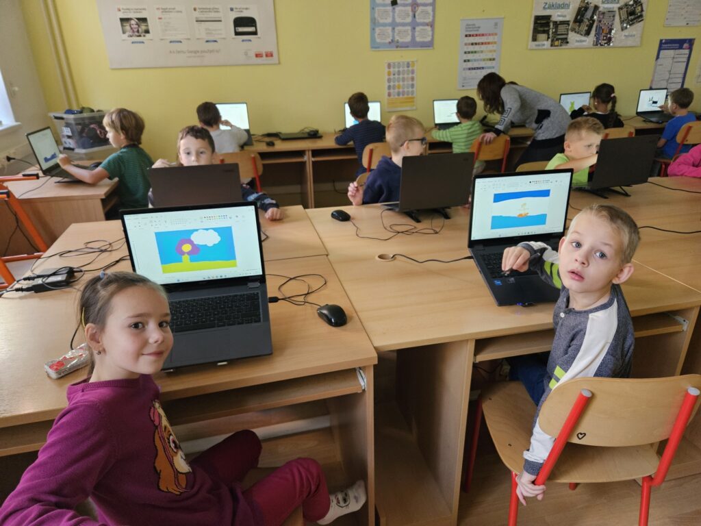Prvňáci si poprvé zkusili práci v počítačové učebně. Pod vedením paní učitelky Lindnerové nejprve zkusili přihlášení na školní síť, což zvládli! Přijde vám to snadné? Nezapomínejte, že teď umí teprve 4 písmena. Potom pracovali s programem Malování, kde zkoušeli psát a pak namalovali obrázek.