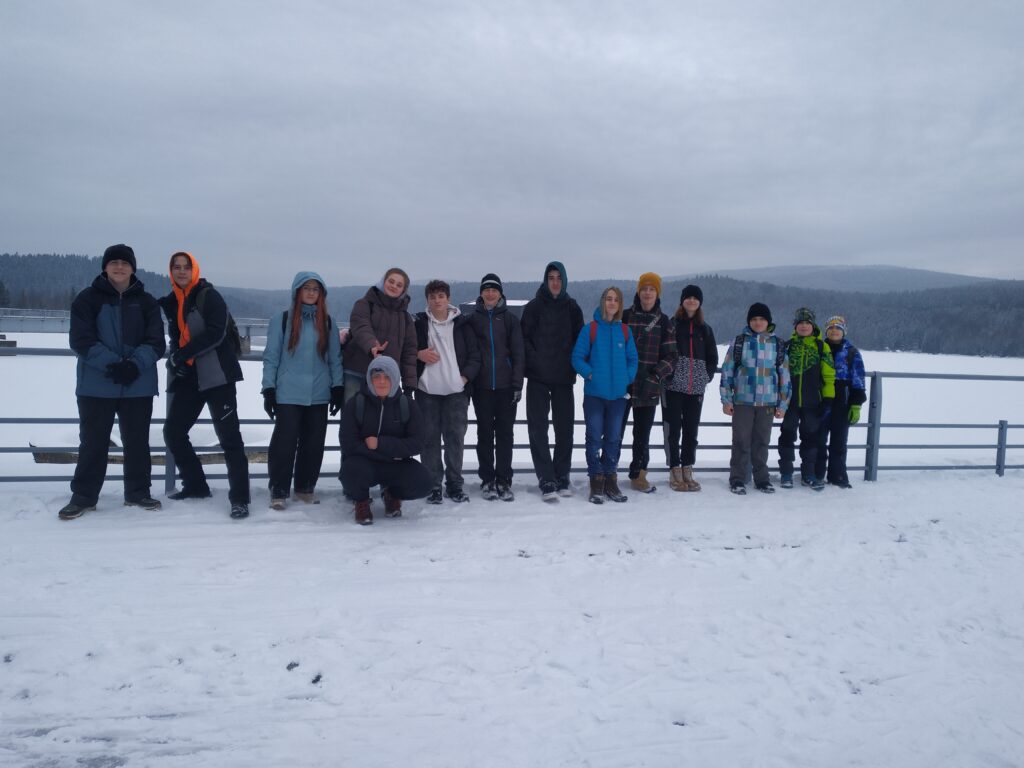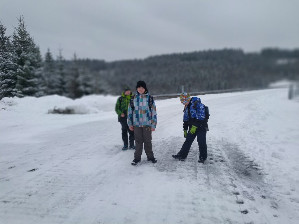 Konec pololetí byl tentokrát nejen ve znamení pololetních známek, ale i Zimního dne. Žáci druhého stupně, ke kterým se připojila už taky pátá třída, si mohli vybrat bruslení, sjezdovky, snowboard nebo turistiku. Naše třída využila celou nabídku sportovních aktivit a užila si prima dopoledne. Bruslaři zamířili na městský zimní stadion. Lyžaři a snowboardisté ovládli sjezdovku na Jizerkách a turisté vyšlápli od sjezdovky směr Bedřichovská přehrada, Prezidentská chata a zpět k Arnice. Naši turisté, Vojta, Tomáš Michalík a Matyáš si pořádně mákli, protože jsme byli ve skupině s devátou třídou. A ti, když přidali do kroku, tak měli páťáci co dělat. Ale všechno zvládli, ušli 9 km a společně s devítkou si ještě pořádně užili na klouzačce, ve kterou se proměnila silnice k přehradě.